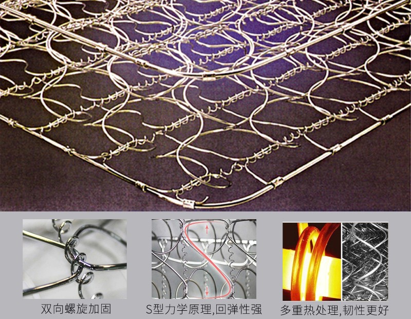妙儿扣弹簧结构还算稳定,用的钢线较少,成本低,市面上便宜的弹簧床垫大多用它做内胆。如果厂家生产这种弹簧,不会或不打加强边,这种床垫时间长了会咯吱响。好在价格便宜吧。