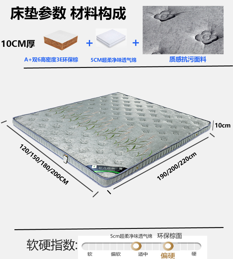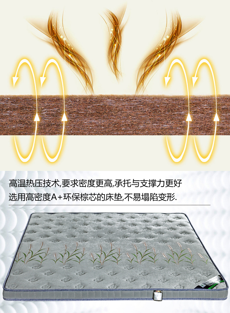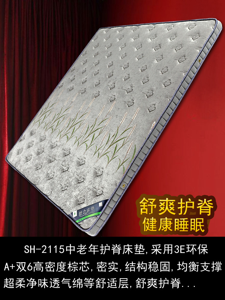 舒合SH-2115中老年舒爽护脊抗污环保棕床垫,以A+双6高密度3E环保棕为内胆,密实,结构稳固,均衡支撑.5厘米厚超柔净味透气绵为舒适层,舒爽护脊,守护健康睡眠...