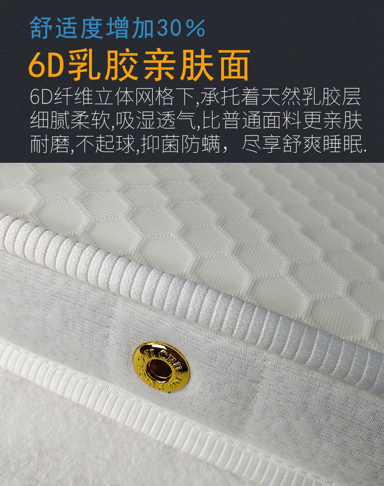 舒合SH-2203环保椰棕6D乳胶床垫,采用3E环保棕为核心支撑内胆,加上高弹绵,6D乳胶面等舒适层,硬度增加40%,舒适度增加30%,更有效保护脊椎,缓解肌肉疲劳,增加睡眠质量...