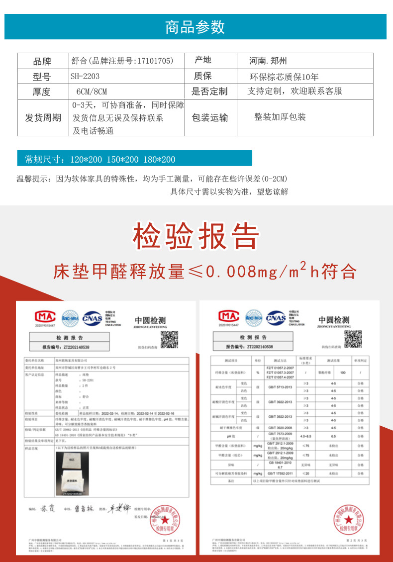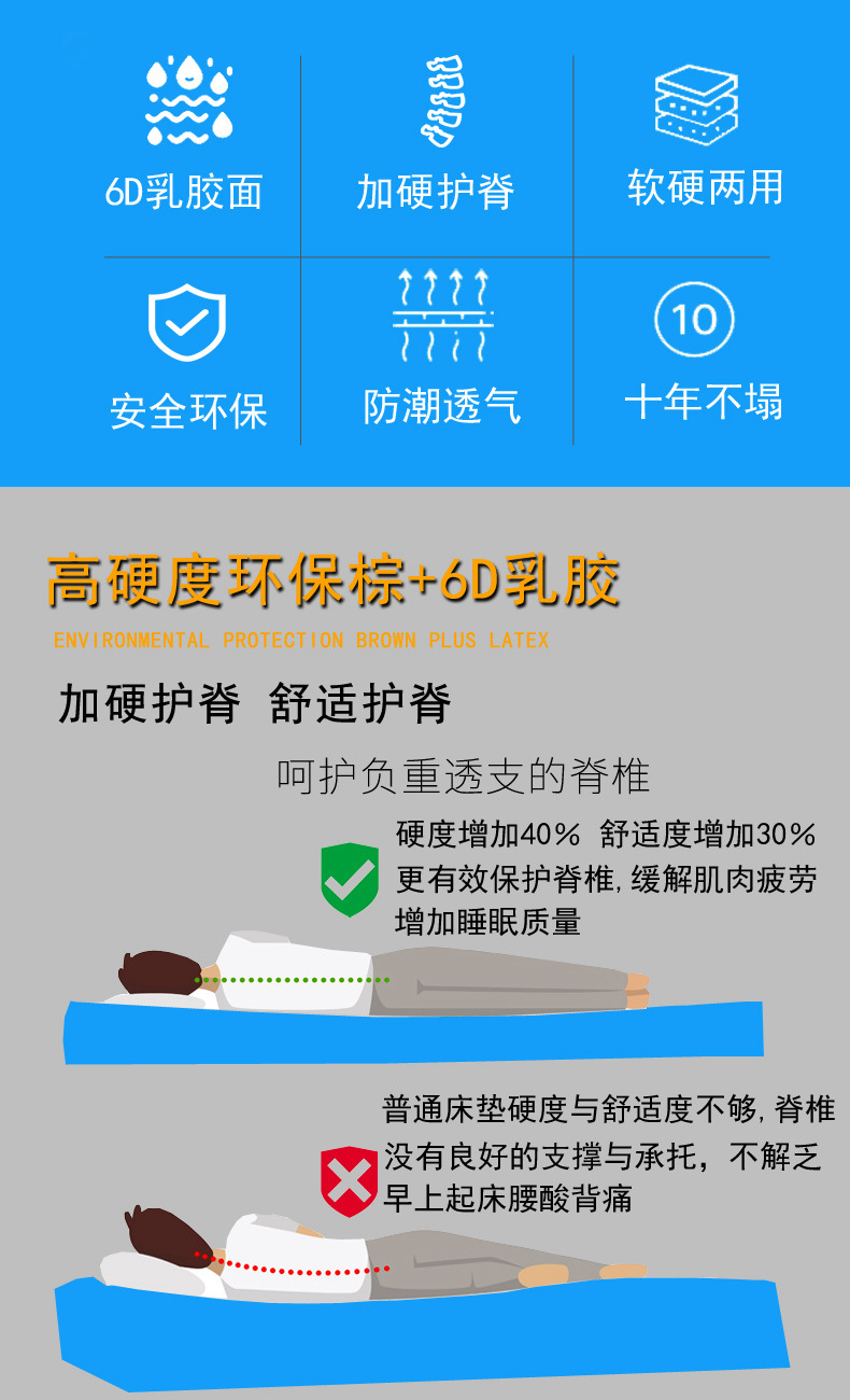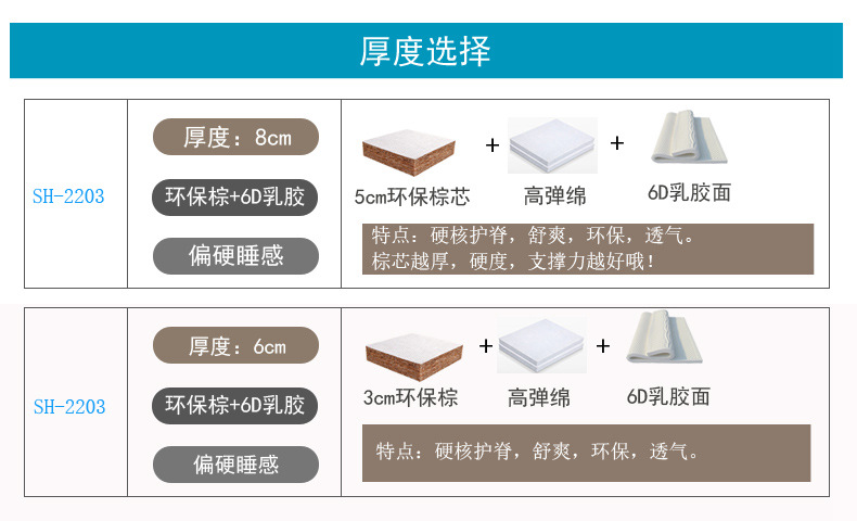 河南郑州床垫厂家,舒合SH-2203环保椰棕6D乳胶棕床垫批发价格:
