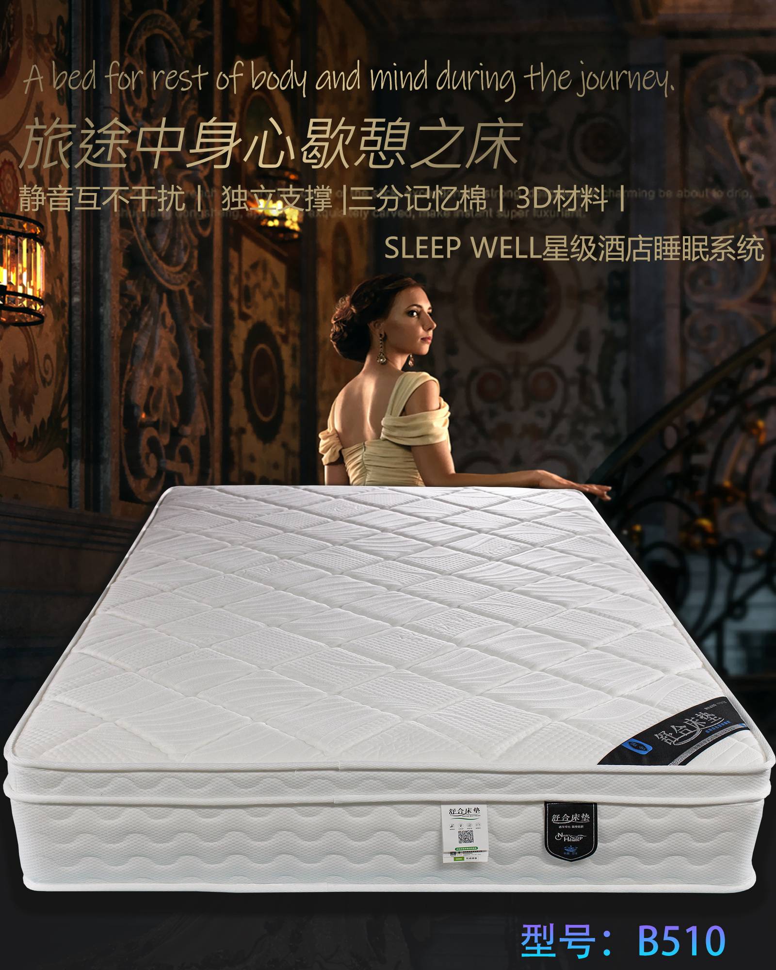 在酒店住宿时,一张好床垫能让疲惫的旅人迅速恢复精力。舒合B510袋簧3D材料记忆棉酒店专用床垫,便是这样一款能带来极好睡眠体验的产品。