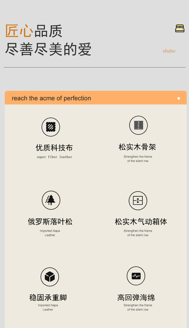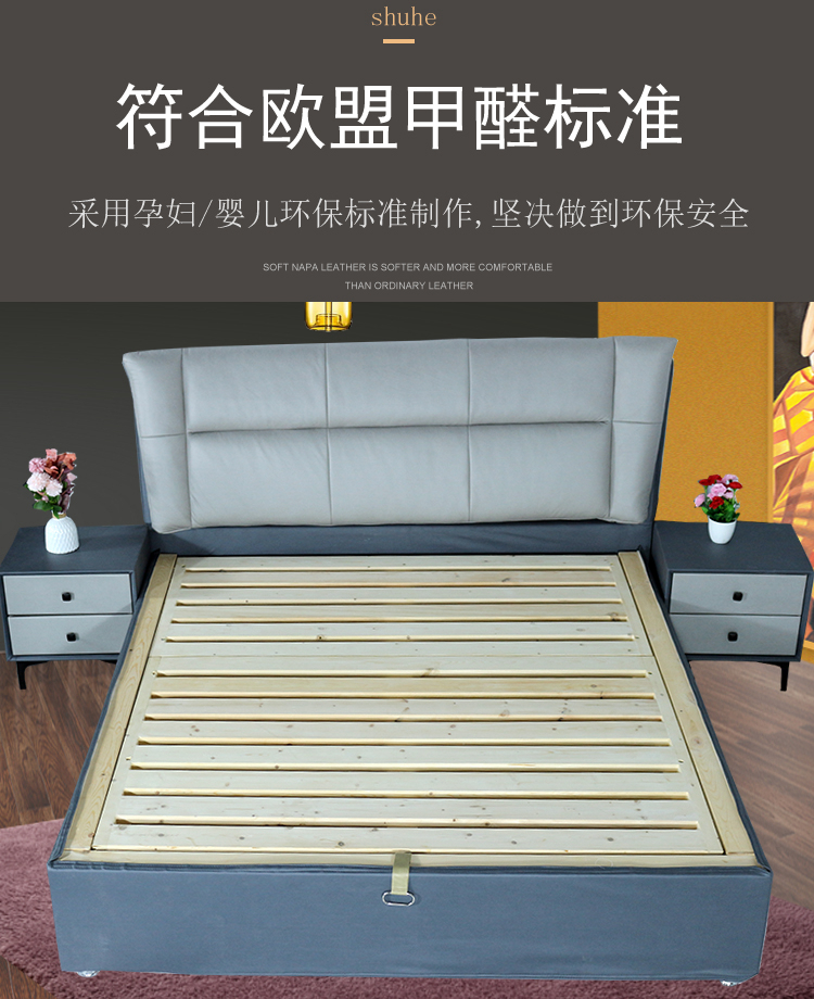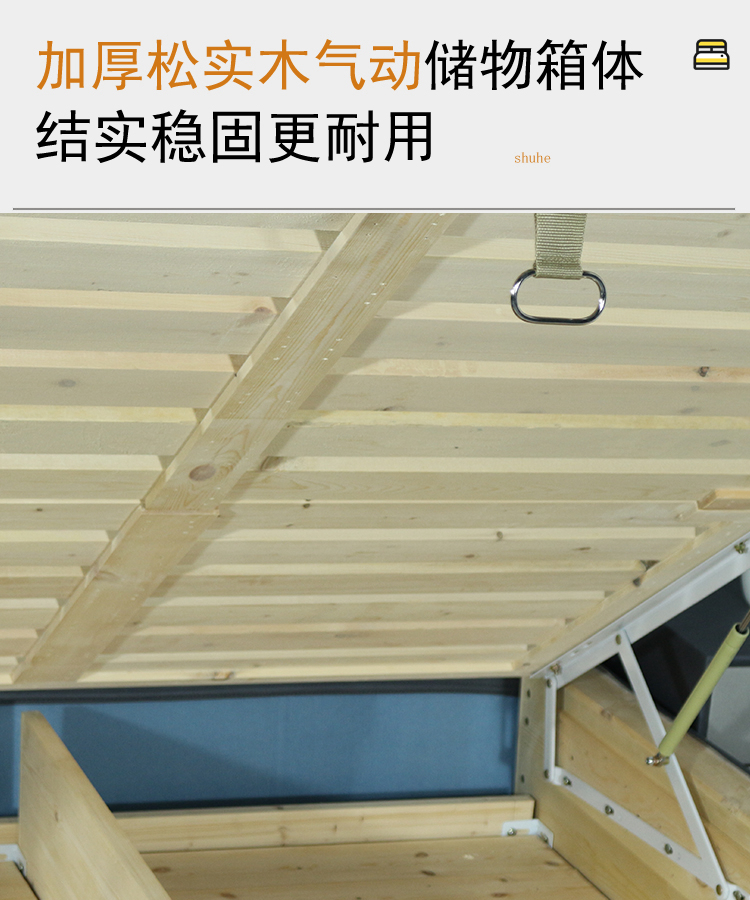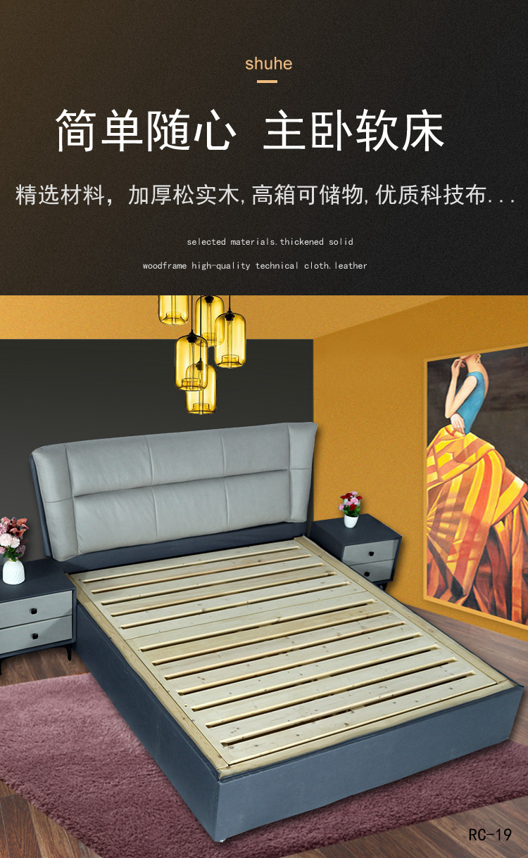 舒合RC-19家用主卧实木软包布艺气动高箱双人床,采用松木实木气动箱体,加厚松木气动杆排骨架,外包高弹绵等舒适层,优质科技布面料,柔软,韧性好,生活储物更方便...