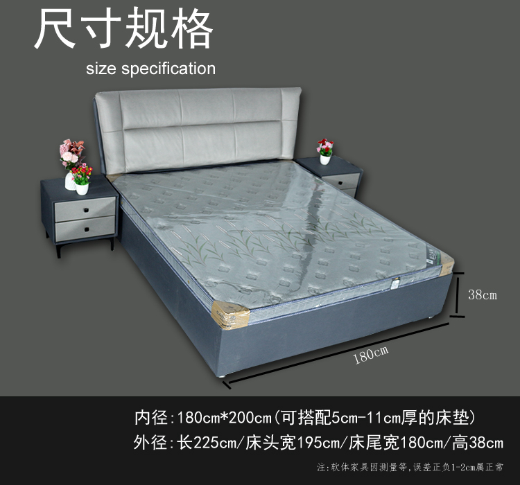 规格尺寸:180CM×200CM双人床,不含床头柜(可选)