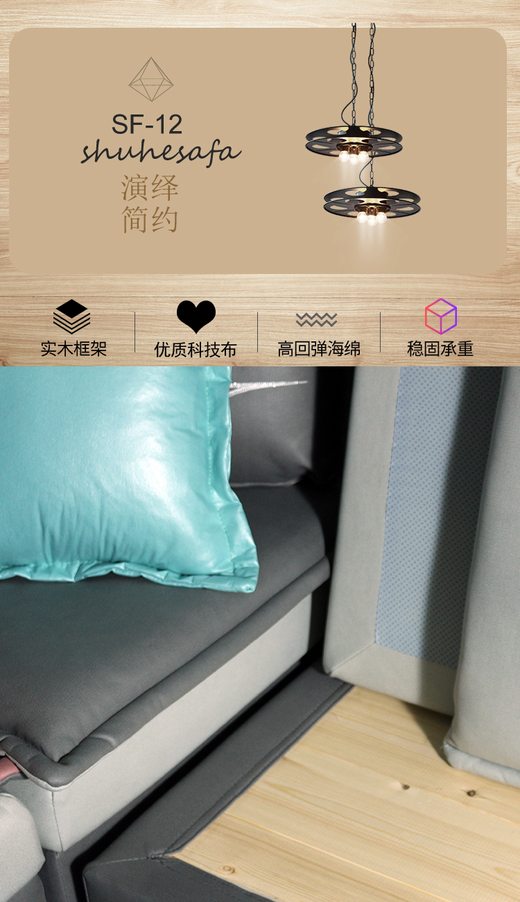 舒合SF-12客厅流行轻奢科技布艺沙发,采用加厚松实木为骨架,高弹绵为舒适层,优质科技布面料,时尚简约,亲民的沙发厂家价格,大户型客厅家具,享受舒适生活...