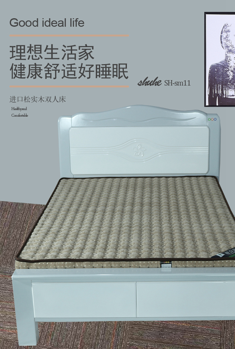 舒合SH-sm11现代简约主次卧实木床,采用松木实木材质,框架结构,加厚实木床板,环保油漆工艺,高度可调.适用不同高度的床垫.工厂直销床性价比高...河南郑州工厂直发,同城可送货安装...