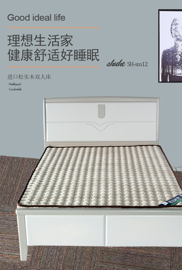 舒合SH-sm12时尚简约主次卧实木床,采用松木实木材质,框架结构,加厚实木床板,环保油漆工艺,高度可调.适用不同高度的床垫.工厂的价格,性价比高...郑州实木床,同城实木床可送货安装...