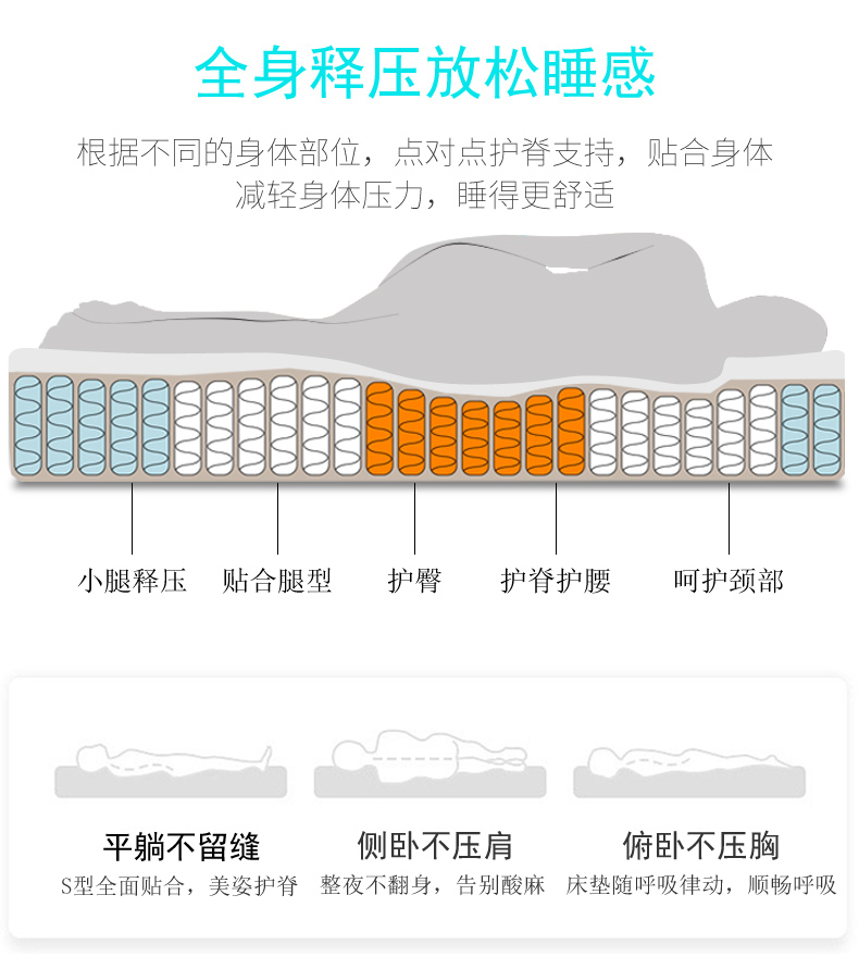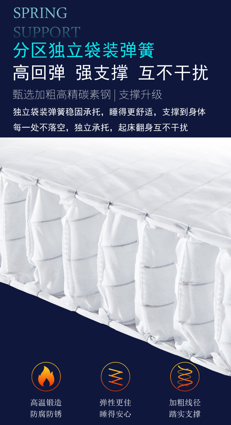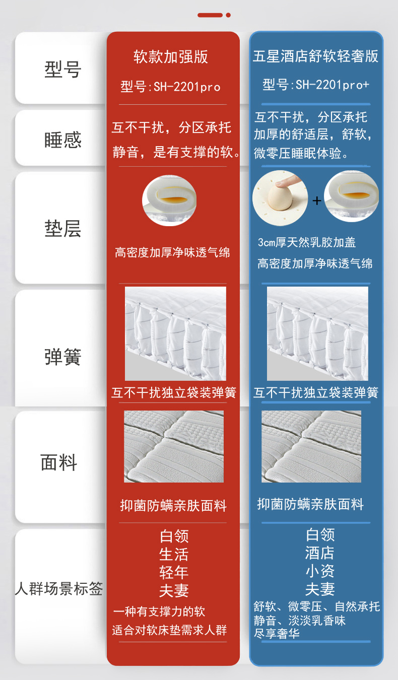 3,SH-2201pro袋装弹簧软款床垫,弹力好,静音,互不干扰,尽享舒适睡眠。
