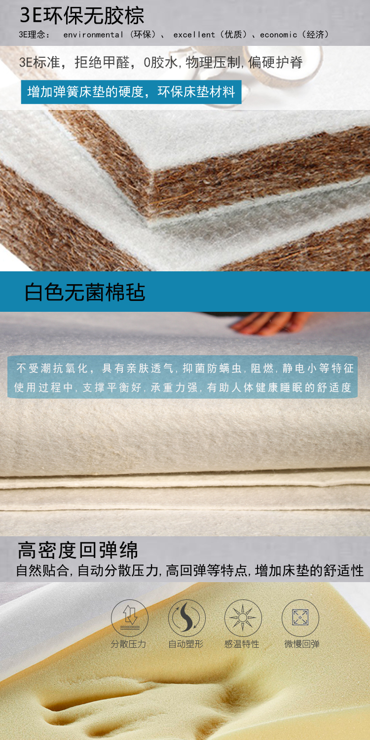 弹簧床垫席梦思、一面椰棕一面弹簧两面用款